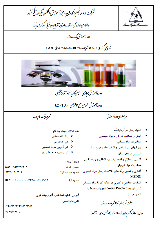 دوره آموزش مجاز ی ایمنی، بهداشت و محیط زیست آبان ۲۵, ۱۴۰۰ توسط امینه جمی · Published آبان 25, 1400 · Last modified مهر 24, 1404