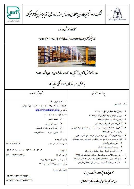 دوره آموزشی آشنایی با انواع عوارض مواد خوراکی و چک لیست ها درسردخانه ها برابر با استاندار ملی 1899 توسط jami404 · منتشر شده می 7, 2025 · بروزرسانی شده اکتبر 15, 2025