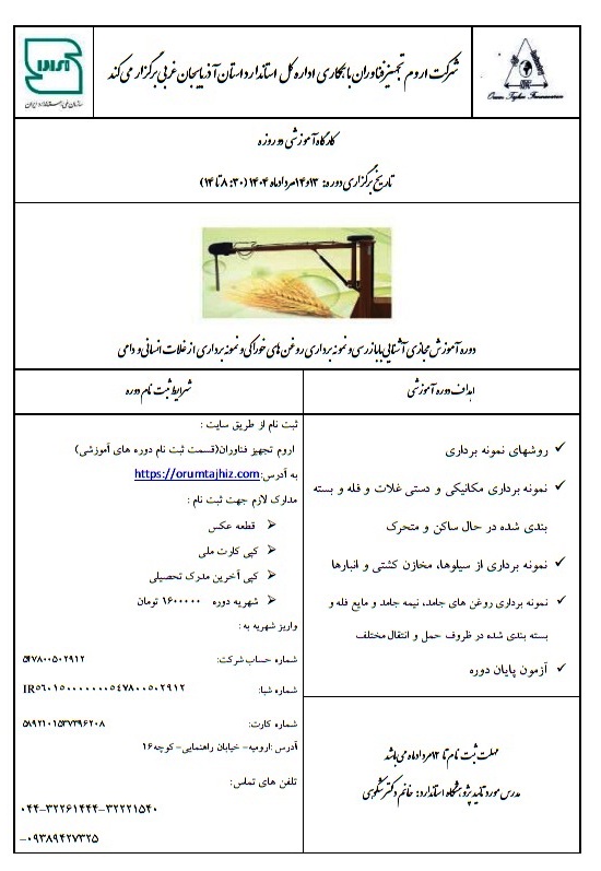 دوره آموزش مجازی آشنایی با بازرسی و نمونه برداری روغن های خوراکی و نمونه برداری از غلات انسانی و دامی توسط امینه جمی · منتشر شده مهر 11, 1404 · بروزرسانی شده مهر 23, 1404
