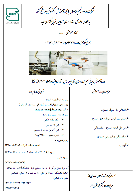 دوره آموزشی سیستم مدیریت ایمنی و بهداشت شغلی فروردین ۱۴, ۱۴۰۲ توسط امینه جمی · Published فروردین 14, 1402 · Last modified مهر 24, 1404