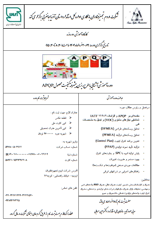 دوره آموزشی آشنایی با طرح ریزی پیشرفته کیفیت محصول APQP توسط jami404 · منتشر شده اکتبر 15, 2025 · بروزرسانی شده اکتبر 15, 2025